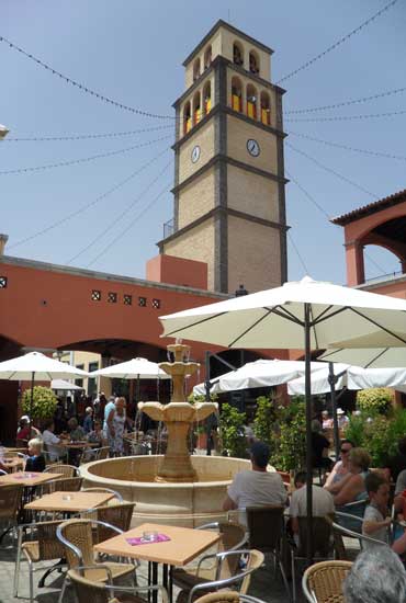 The Shopping Centre El Campanario is situated in the south of Corralejo. You can easily walk to the shopping centre from your hotel or even from the centre of the town. There is underground parking. It is a new construction in the local Canarian style with colourful fronts and balconies in wood. A successful concept. It is relaxing to stroll there, to visit the different shops and to have a drink on one of the terraces.