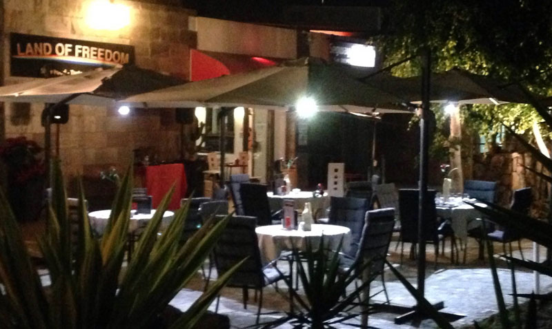 Het restaurant Land of Freedom biedt ontbijt, lunch, lunch, diner en drankjes. Het restaurant geïnspireerd op de Slow Food filosofie (goed, schoon, schoon, eerlijk). Het unieke aanbod is een proeverij met 5 gerechten en 5 wijnen. De geserveerde hoeveelheden zijn als de stijl van Spaanse tapas. De Italiaanse chef bereidt allerlei gerechten. Ze bieden ook drankjes, cocktails en een ruime keuze aan thee in een rustige en ontspannende omgeving. Gratis wifi en een ruimte voor het delen van boeken, met boeken in 5 verschillende talen.